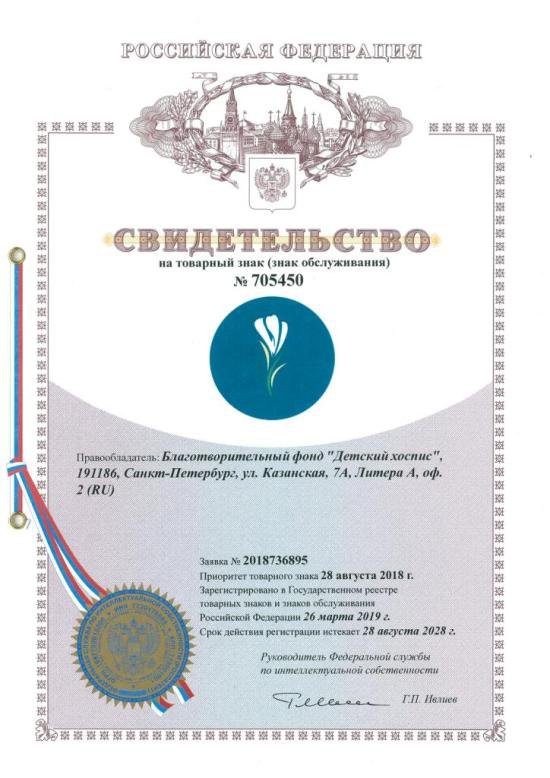 У Благотворительного фонда "Детский хоспис" появился еще один официально зарегистрированный символ
