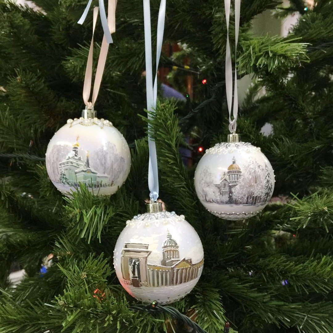 Выбрать лучшие работы было не так уж и просто. Победителем студенческого конкурса стали елочные игрушки Евгения Терентьева с изображением достопримечательностей Санкт-Петербурга: Казанского кафедрального собора, Исаакиевского собора и Часовни святой блаженной Ксении.