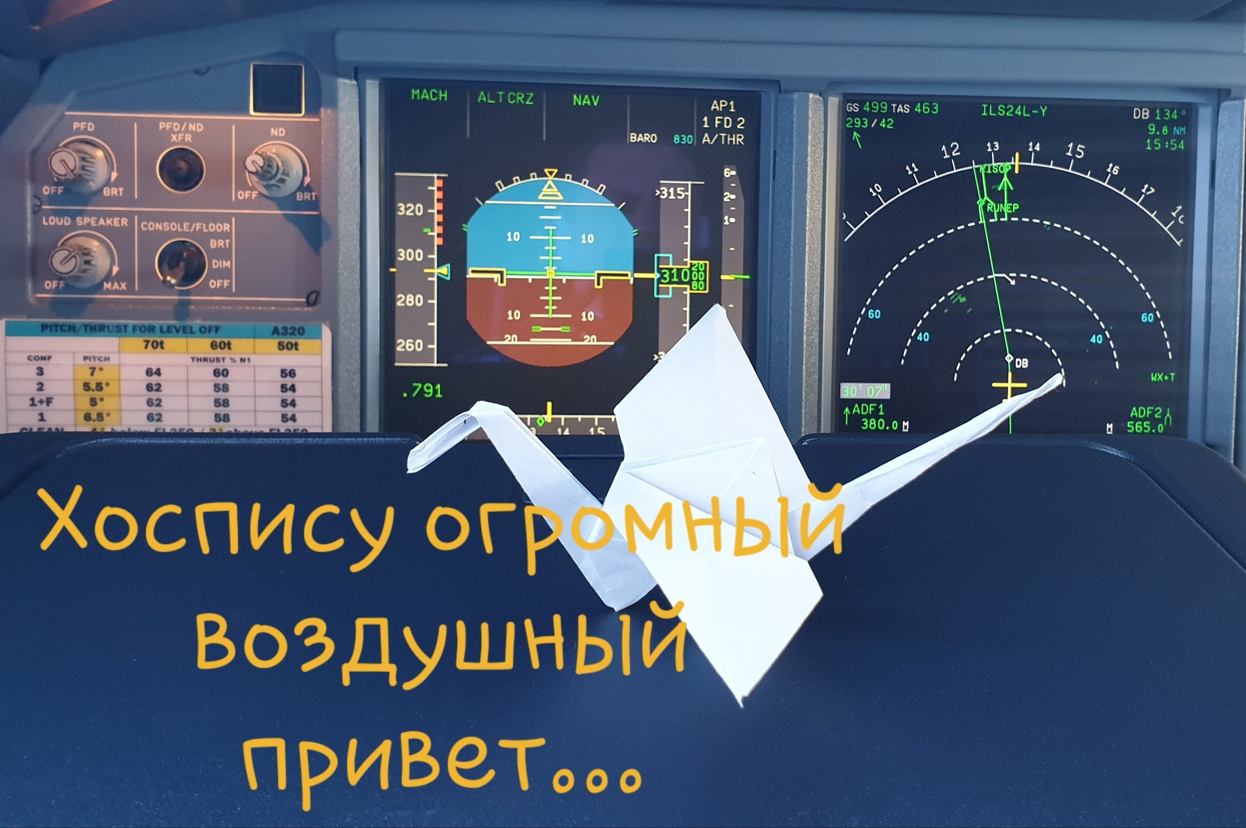 Я смотрел материалы, которые присылала координатор волонтеров. Кто-то отправлял «приветы» из дома, кто-то показывал, как выращивает цветы на даче, и так далее. Я долго ломал голову: что же отправить? Удаленка удаленкой, но мы все равно продолжали работать. Я вышел из положения, сделав фотографию в очередном рейсе. Два часа я потратил на то, чтобы смастерить оригами. Это что-то с чем-то! Очень тяжело, как оказалось. Мой бумажный журавлик получился похожим на птеродактиля (смеется).